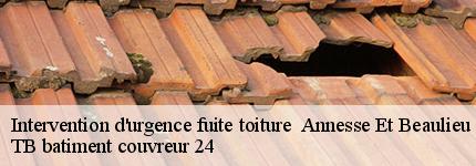 TB batiment couvreur 24 est le professionnel en intervention d'urgence offrant des conditions tarifaires avantageuses en cas de fuite de toiture à Annesse Et Beaulieu. Notre équipe réactive et expérimentée est là pour résoudre rapidement vos problèmes de toiture, tout en veillant à ce que nos services restent accessibles. Nous comprenons l'urgence de la situation et nous nous engageons à fournir des solutions efficaces sans compromettre la qualité. Faites confiance à TB batiment couvreur 24 pour des interventions d'urgence abordables et fiables.